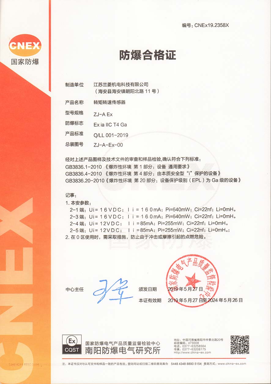 • 傳感器防爆證書